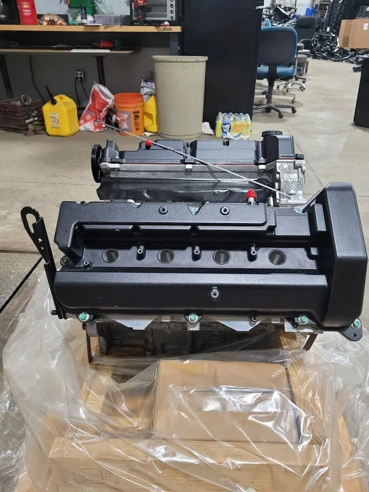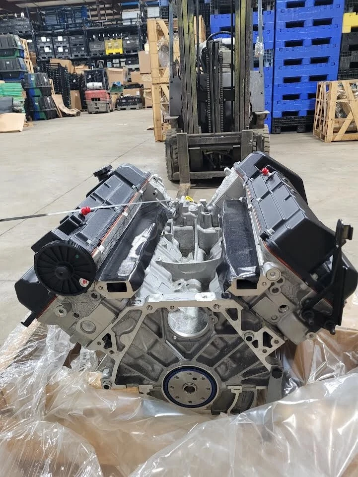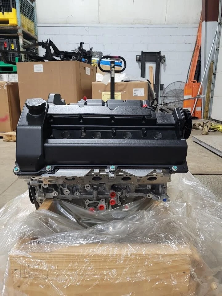 Complete factory long-block including block, heads, crankshaft, pistons, camshafts, timing components, oil system, and valve covers.