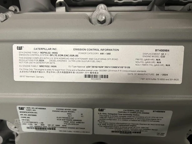 For buyers searching for a C32 CAT engine for sale, this unit stands out with minimal hours, excellent condition, and compliance with EPA Tier 4F and EU Stage 5 standards. Its robust design supports applications in models like CAT 777F, CAT 992K, and CAT D11T, making it highly versatile.